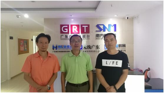 6月29日上午,mobile.28365艺术与设计学院副院长贺克、教师郭向民来到位于流花湖畔的广东广播电视台旗下广东南方新媒体股份有限公司,公司目前业务涵盖IPTV、互联网电视、手机电视、地铁电视、网络视频、增值和垂直业务以及新媒体内容交易等,并已初步搭建起对全业务进行整合和支撑的全媒体融合云平台。公司总经理姚业基先生与我院领导和老师进行了深入的交流,并针对企业与高校开展实践教学以及提高学生实践、创新、创业能力,以校企合作联盟为切入点,提出了"以产学研结合为基础,建立校企全面合作联盟"的校外实习基地运行模式,构建了集科技服务、实践教学与大学生就业为一体的教学体系,以提高实训效果与学生的专业综合素质,更好地满足社会需求专业人才做了广泛的探讨与沟通并初步达成校企合作共同培育专业人才及大学生校外实习基地合作协议。